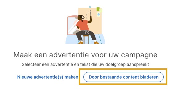 5 Bij advertenties maken, kies je voor ‘Door bestaande content bladeren’.