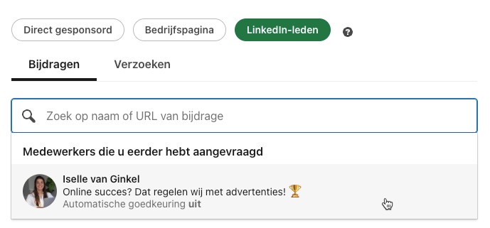Thought Leader Ads zijn advertenties vanuit de naam van medewerkers (thought leaders). Je toont dus eigenlijk de posts van jouw medewerkers aan een groter publiek. Maar hoe gaat dit in zijn werk? Ik leg het je hieronder stap voor stap uit.