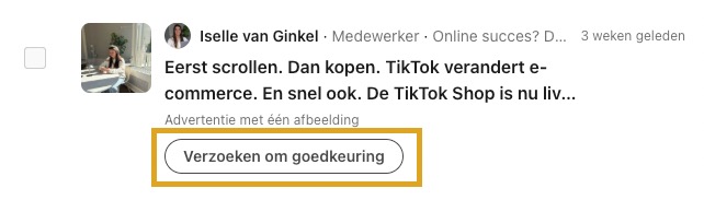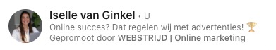 Na goedkeuring klik je de post aan en kun je afronden! Je krijgt dan een advertenties met de naam van de persoon en vervolgens: gepromoot door [bedrijf].